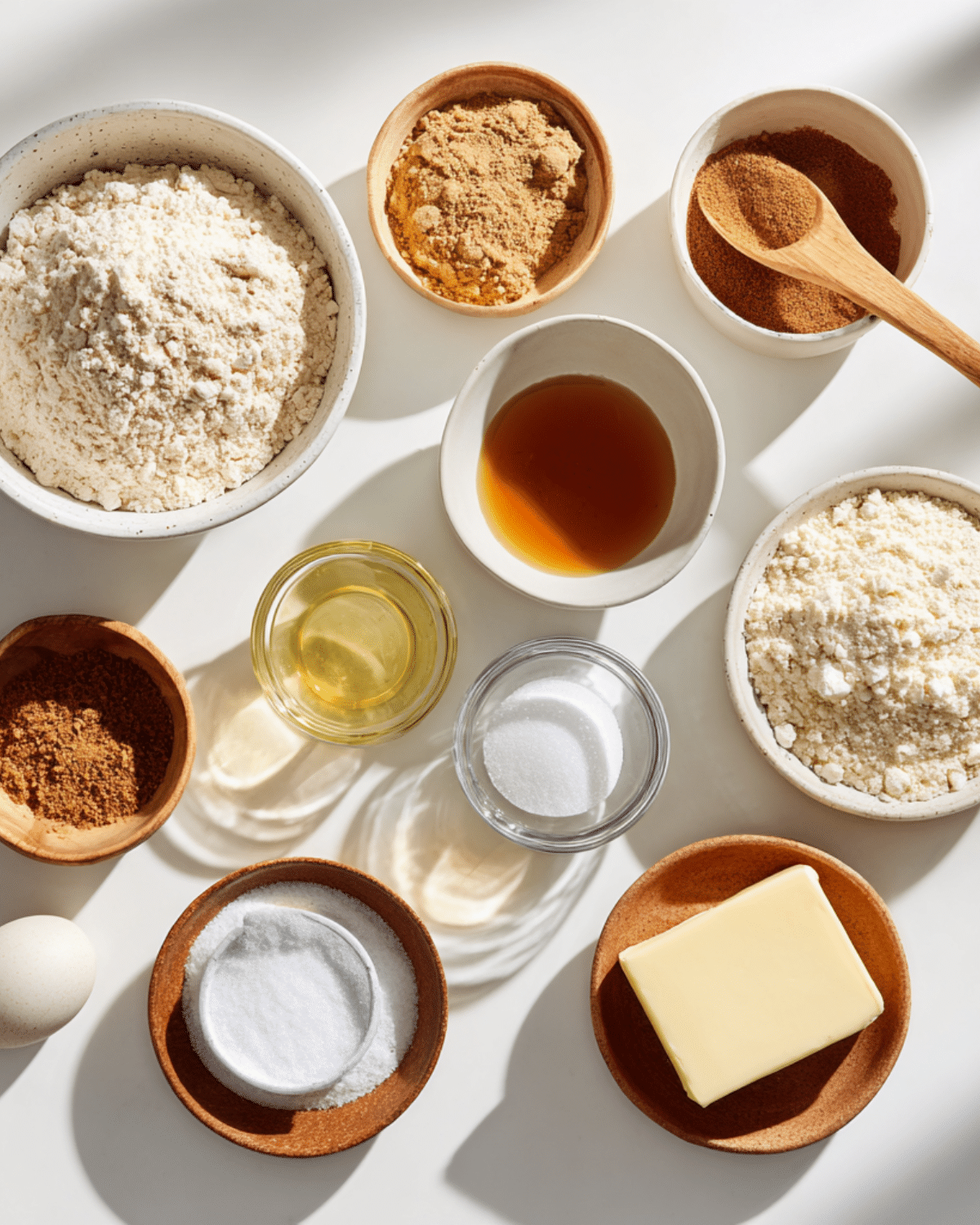 This recipe starts with all-purpose flour, which gives structure and a balanced crumb. Baking powder and baking soda work together as leavening agents to keep the cake fluffy, while a pinch of fine table salt enhances every bite. Light brown sugar brings a subtle molasses note that deepens the flavor without overwhelming the apples.