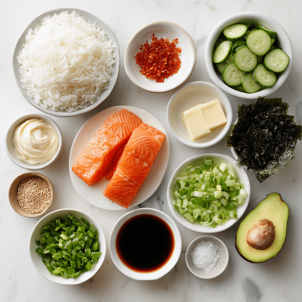 Ingredients for Baked Chipotle Salmon Sushi Cups