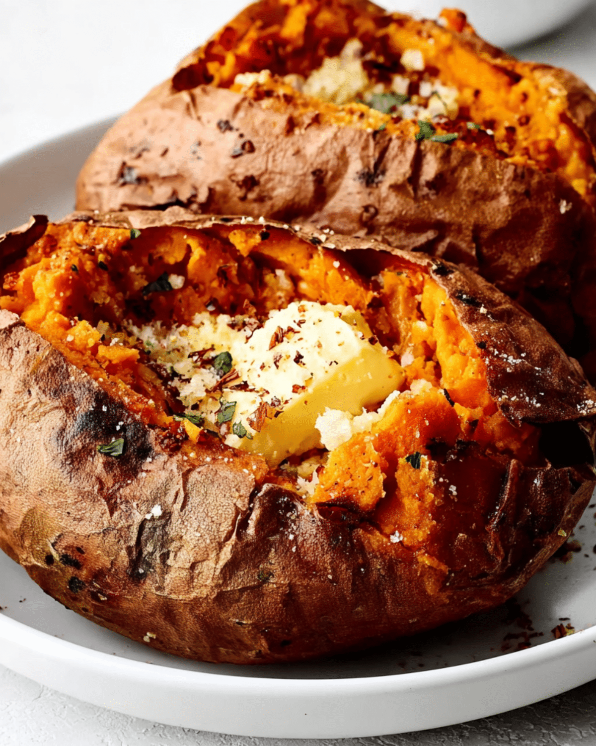 Absolutely. Baked sweet potatoes are perfect for meal prep. You can bake them 3–4 days in advance and store them in the refrigerator. When ready to serve, just reheat in the oven at 350°F for about 10–15 minutes or microwave for 2–3 minutes.