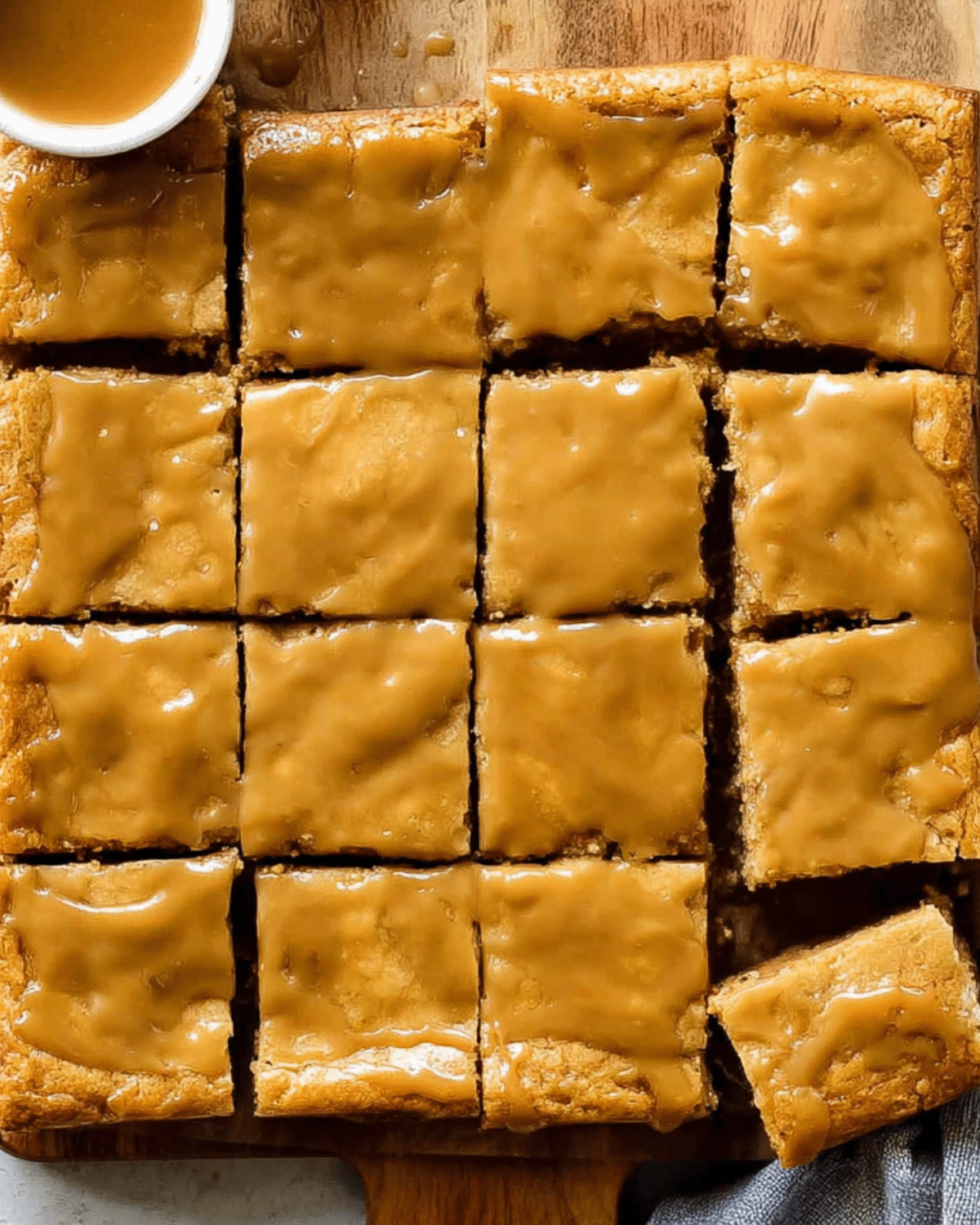 Pour the warm glaze over the hot blondies as soon as they come out of the oven. The heat allows the glaze to spread and soak slightly into the top layer, creating a shiny, flavorful finish.
