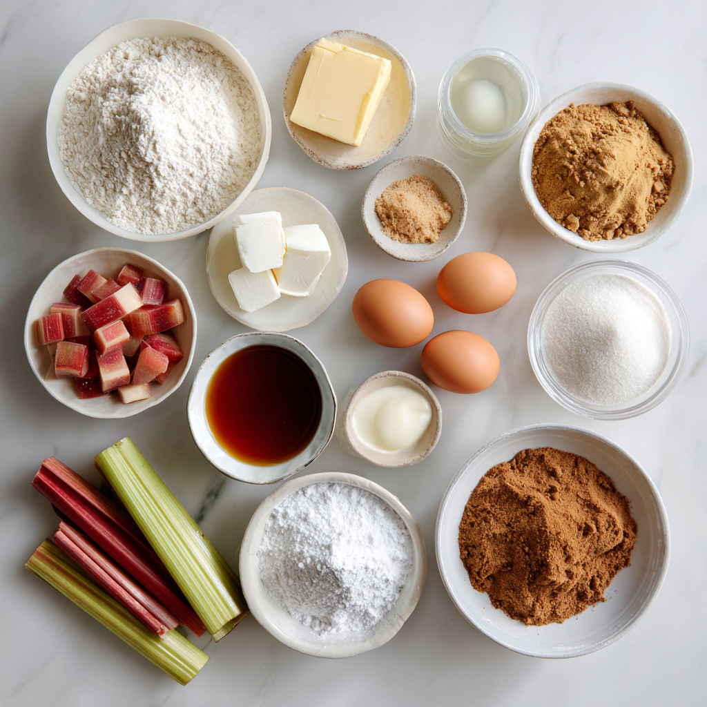 Ingredients for the Best Brown Sugar Topped Rhubarb Cake Recipe