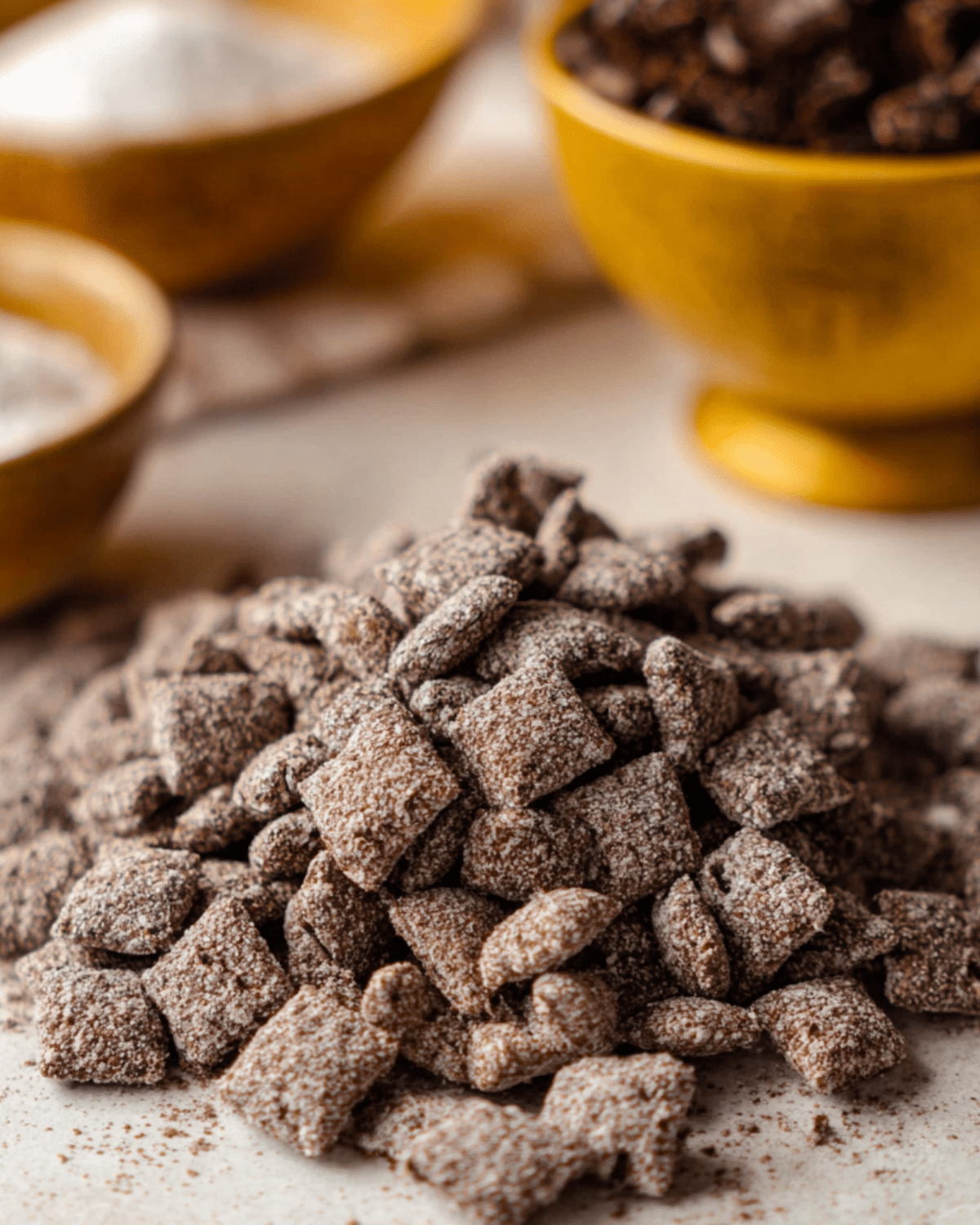 Tip: Prep ahead by making the sugar-cocoa mix and melting chocolate in bulk. You can assemble the muddy buddies just before serving to keep them ultra-fresh and crunchy.