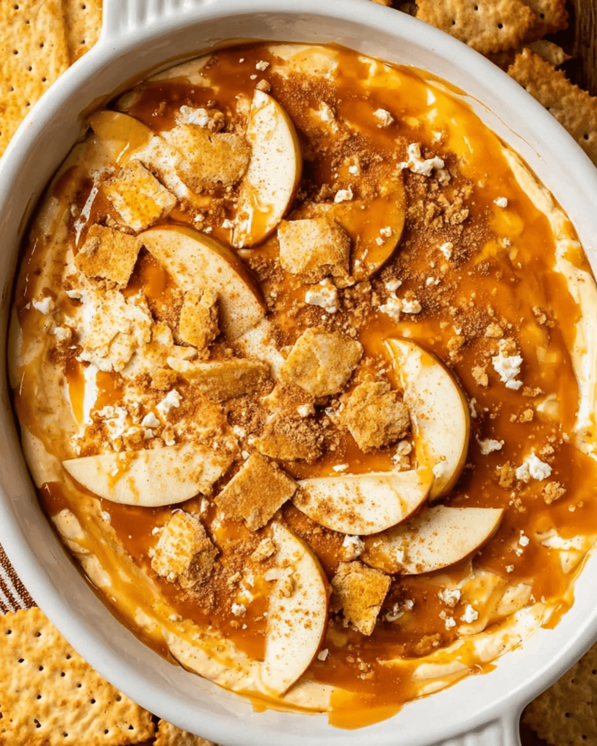 Transform this dip into a mini trifle by layering it in cups with crushed graham crackers, caramel drizzle, and diced apples. It’s beautiful for parties and easy to portion.