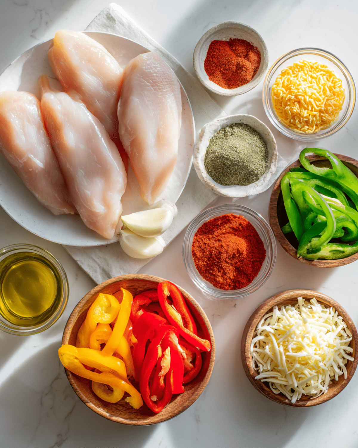 Every great recipe starts with the right ingredients, and cheesy baked fajita chicken is no exception. Using fresh produce and quality cheese makes all the difference between a good dinner and a memorable one.
