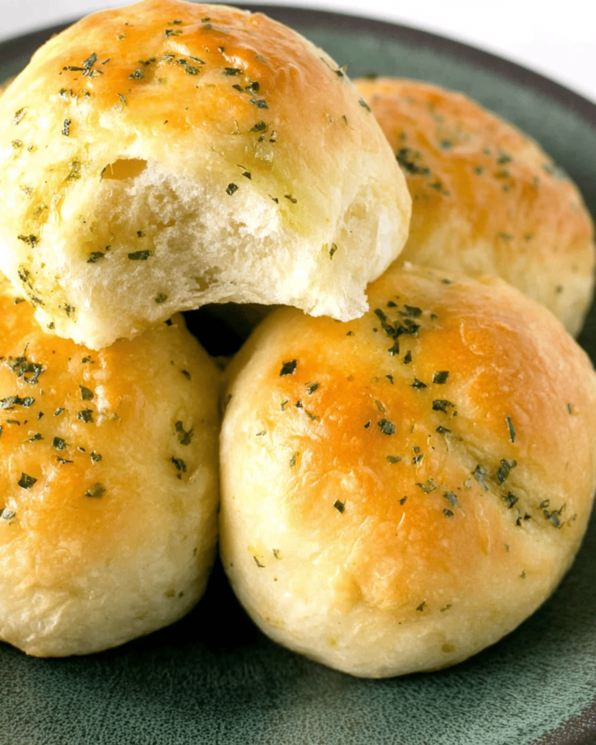 The real magic happens once the garlic bombs come out of the oven. While still piping hot, they’re brushed with a luscious blend of melted butter, garlic powder, and herbs.