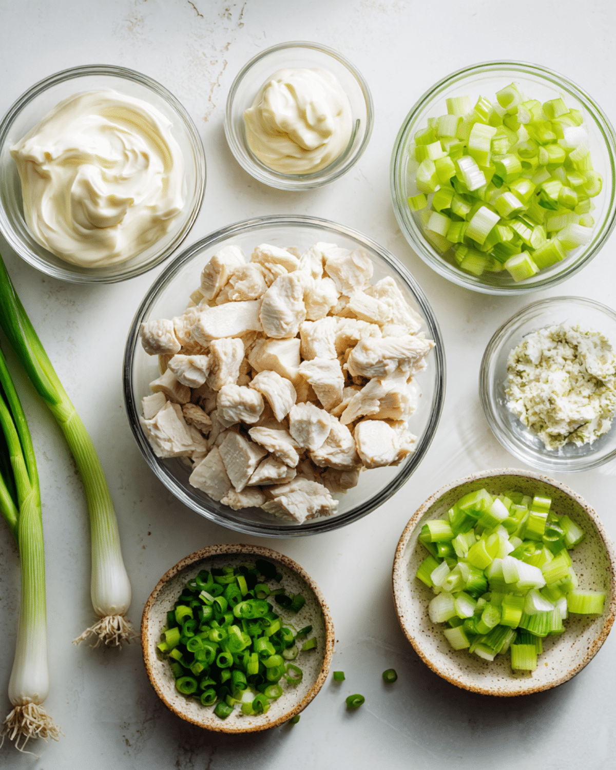 To make a delicious chicken salad, you don’t need fancy ingredients—just fresh, simple ones that blend harmoniously. Below are the essentials that make up the classic chicken salad recipe everyone loves.