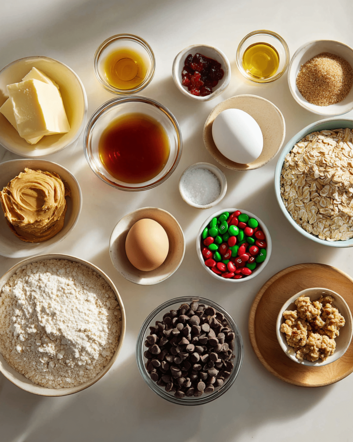 One of the biggest complaints about monster cookies is that they can turn out dry or overly dense. Not this version. These Christmas Monster Cookies are thick and ultra-soft thanks to the careful balance of sugar, butter, and oats. They’re chewy in the center, slightly crisp around the edges, and bursting with chocolate and candy bits in every bite.
