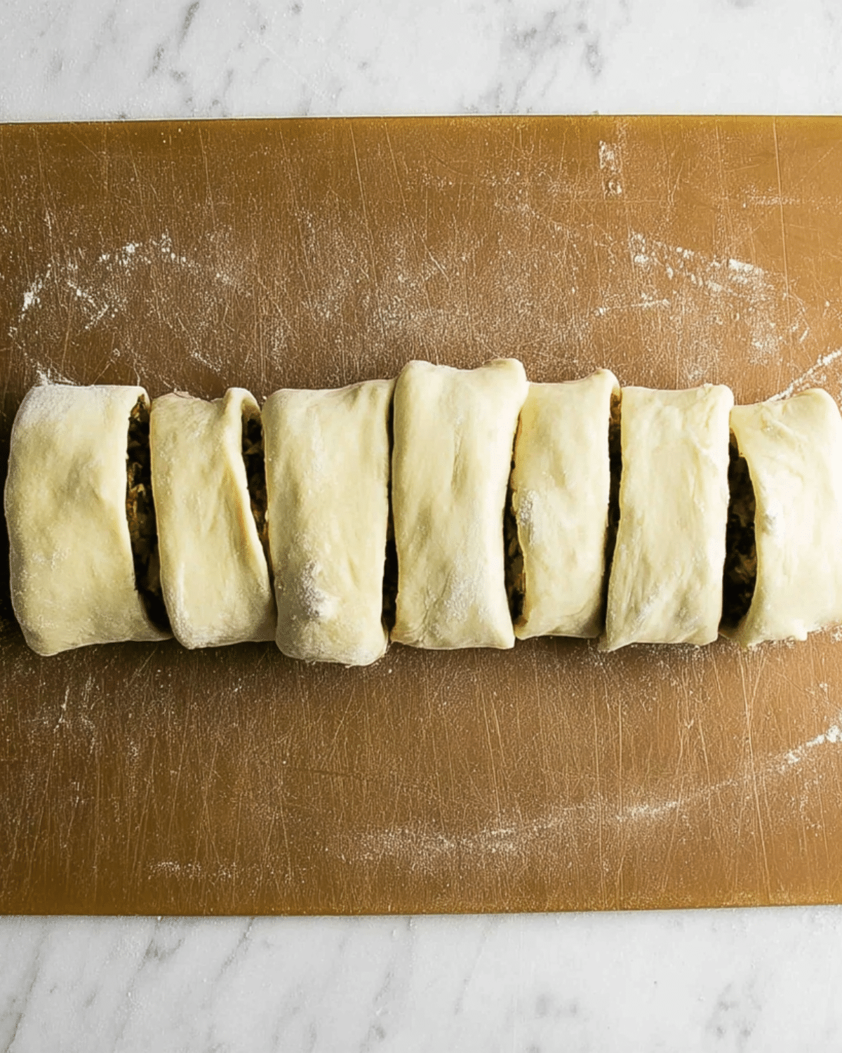 We recommend using Pillsbury Original Crescent Dough Sheet—it’s easy to handle, bakes beautifully, and is vegan-friendly. Just make sure you pick the uncut sheet version, not the triangle-perforated rolls.