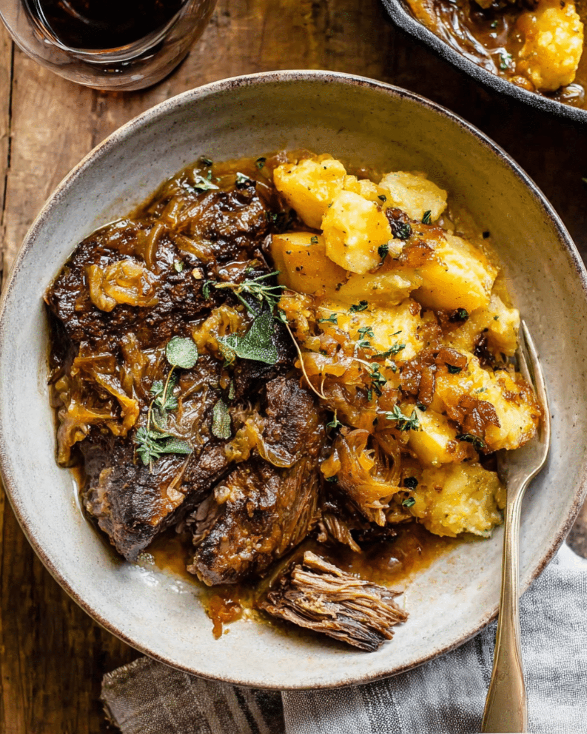 Whether you’re serving it for a family Sunday dinner, a cozy weeknight meal, or your next fall gathering, cider braised pot roast with crispy sage potatoes is the kind of dish that makes memories. It’s hearty, elegant, and delivers everything you want from a slow-cooked classic—without the usual fuss.