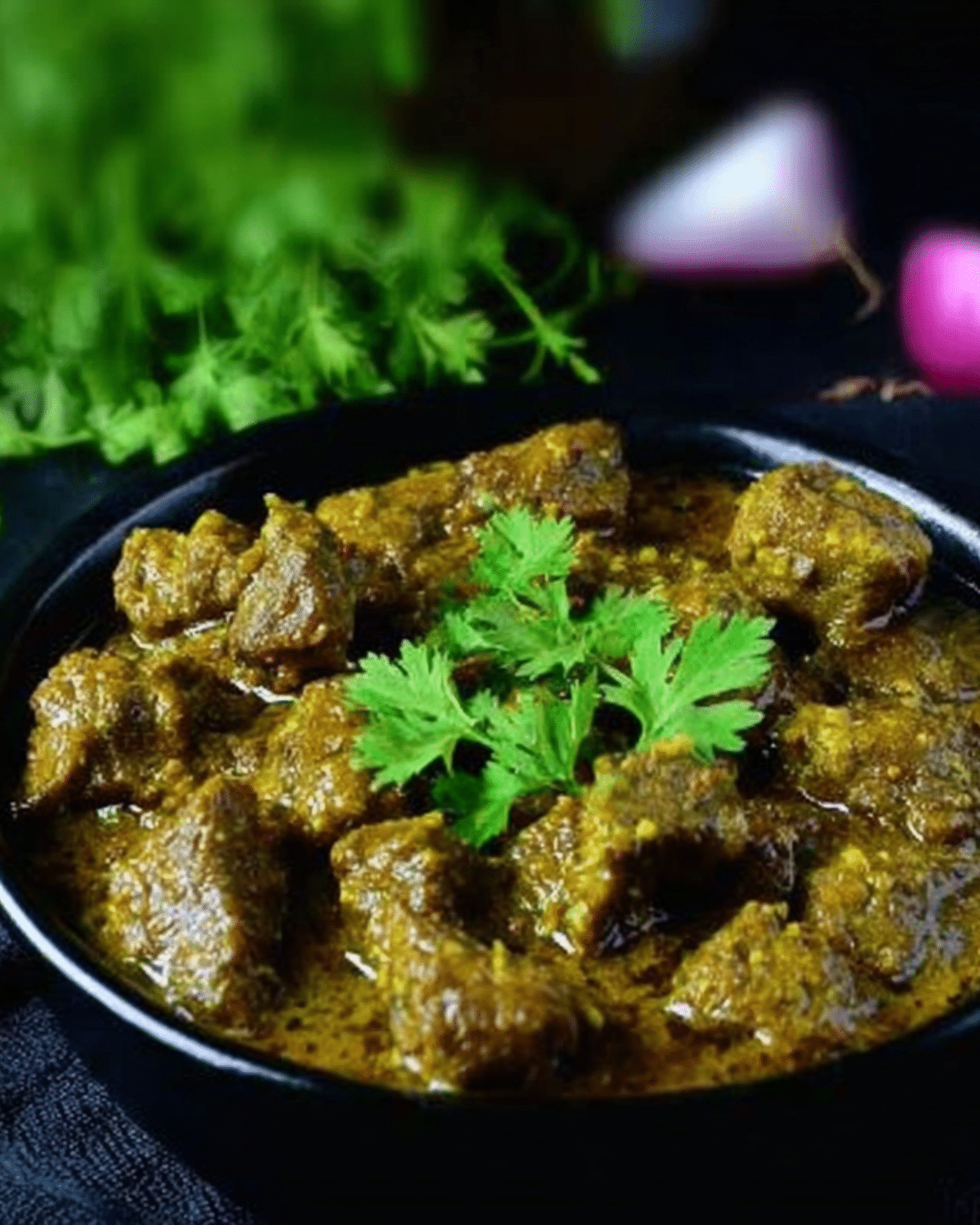 Once beef is tender and the curry thickens, garnish with fresh chopped coriander and serve hot with rice or flatbread. Optional: squeeze lemon juice for brightness.