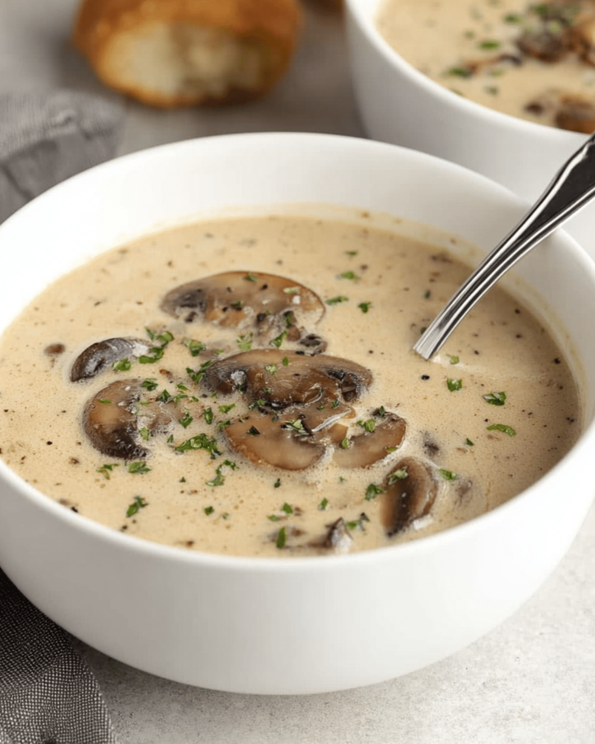 A rich and velvety creamy mushroom soup made with baby bella mushrooms, garlic, butter, broth, and heavy cream. Perfect for cozy nights and easy to customize.