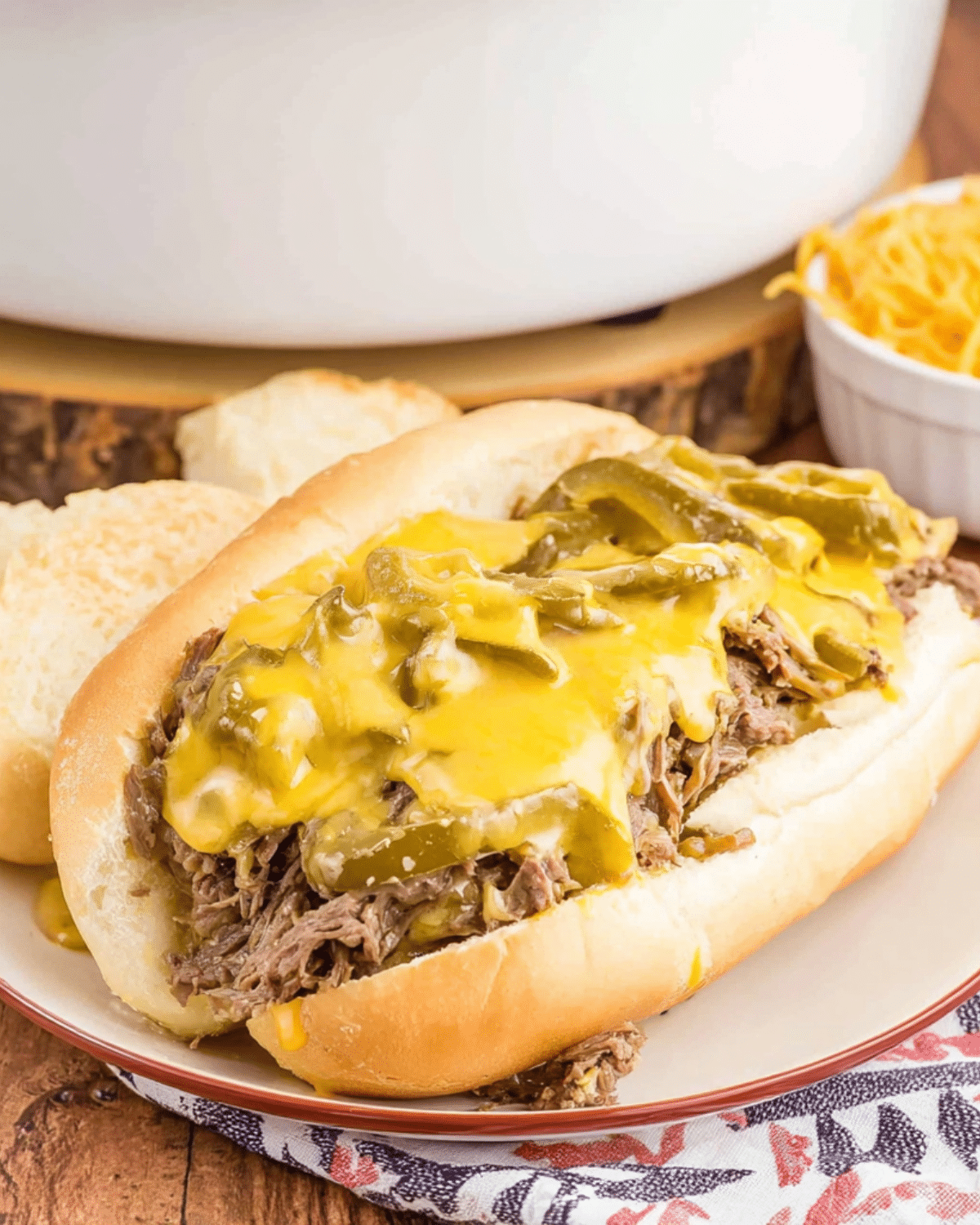 This Crockpot Philly Cheesesteak recipe delivers juicy, tender beef with sautéed onions and peppers, slow-cooked to perfection and topped with melty cheese for the ultimate sandwich experience.