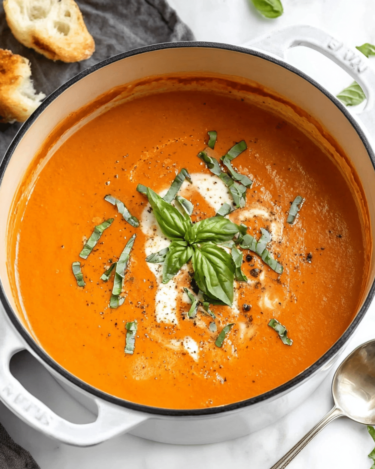 This creamy tomato soup doesn’t rely on a long list of ingredients. A few key players—like San Marzano tomatoes, Italian seasoning, fresh garlic, and a splash of cream—come together in the pot to create something truly special. The layering of flavors, starting with sautéed aromatics, ensures every bite is bursting with warmth and depth.