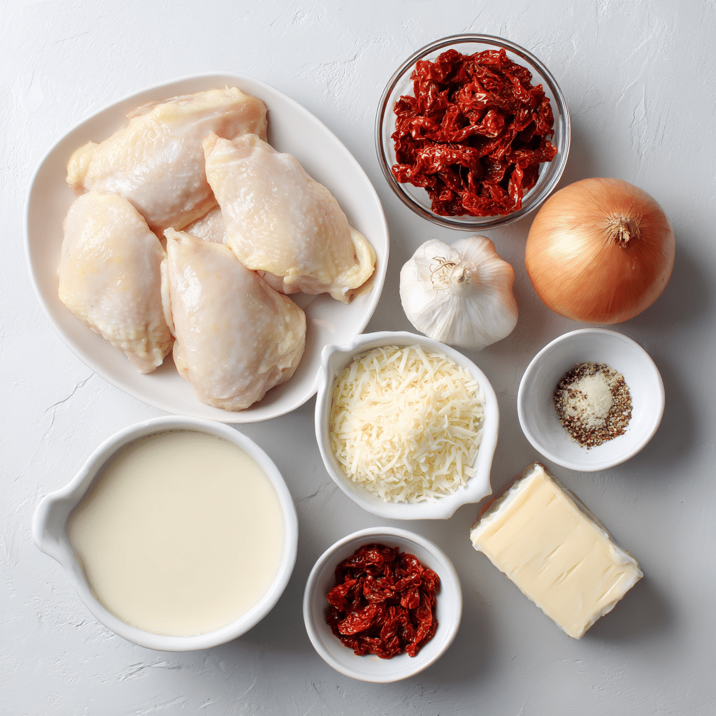 The ingredients for Crock Pot Marry Me Chicken are simple, but each one helps build the final flavor. Chicken breasts or thighs provide the hearty protein base and become tender during slow cooking.