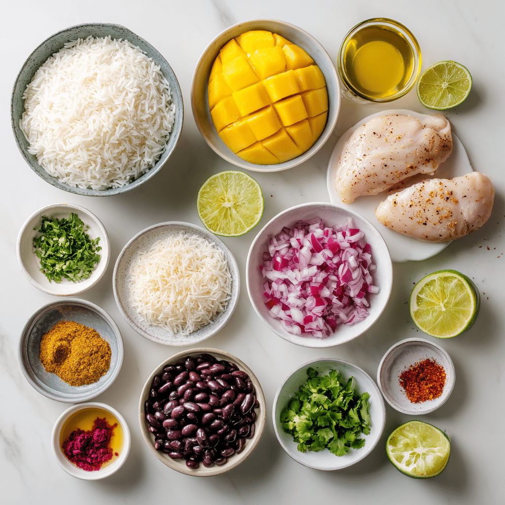Ingredients for Jerk Chicken Bowls with Mango Salsa