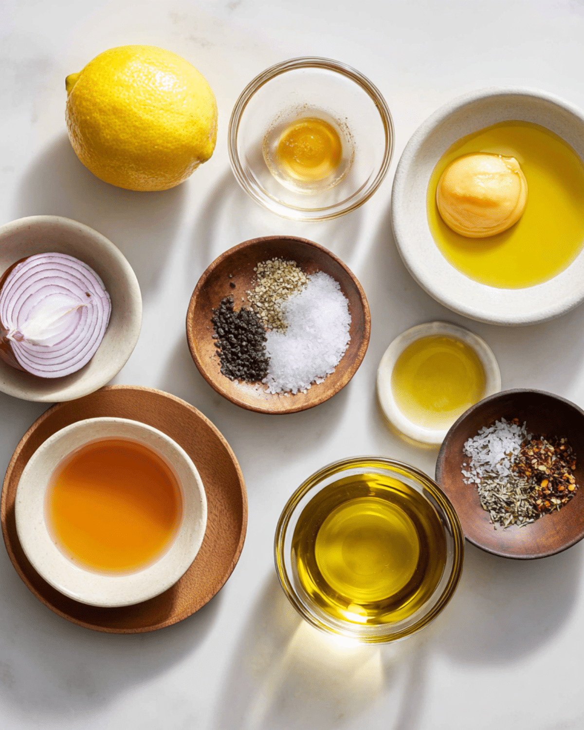 Crafting the perfect lemon vinaigrette salad dressing starts with simple, fresh, and high-quality ingredients. This isn’t just about tossing oil and lemon juice together—each component plays a specific role in building a balanced, vibrant dressing that elevates any dish.