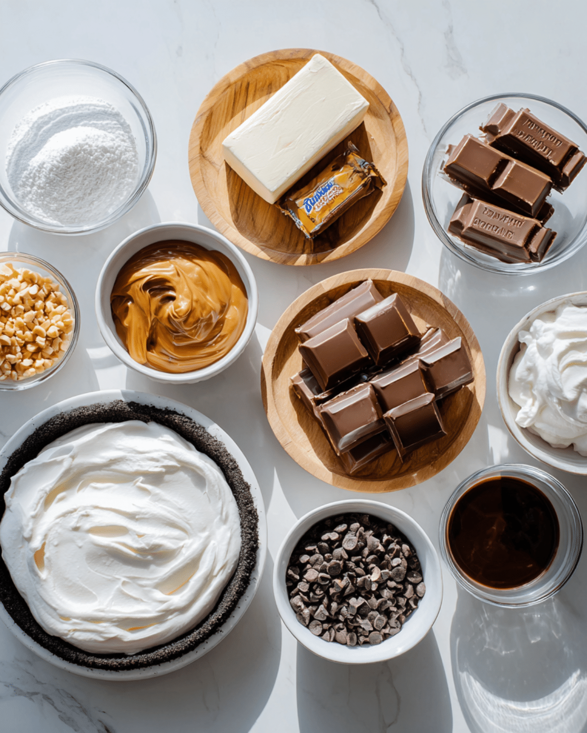 Key Ingredients for No-Bake Snickers Bar Pie