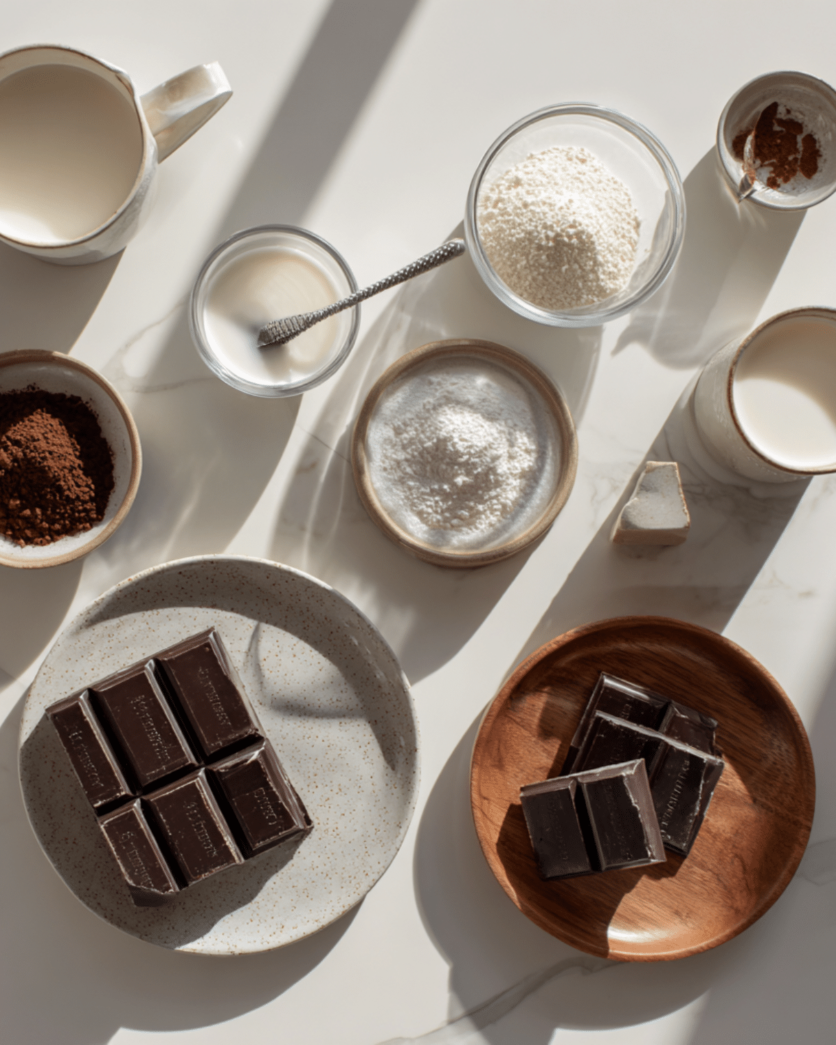 Expect a deep cocoa flavor, slightly bittersweet thanks to the use of 60–70% dark chocolate. The espresso powder subtly enhances the chocolate notes without overpowering them. The heavy cream adds richness, while milk lightens the blend just enough to keep it from becoming overly dense.