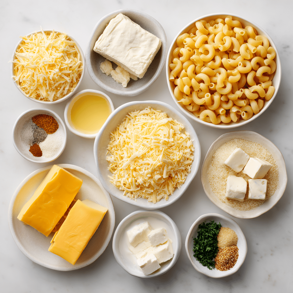 Ingredients for Three Cheese Baked Macaroni