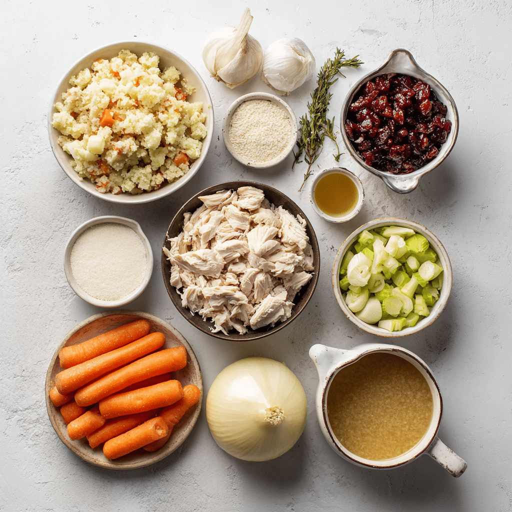Ingredients for Rotisserie Chicken and Stuffing Casserole