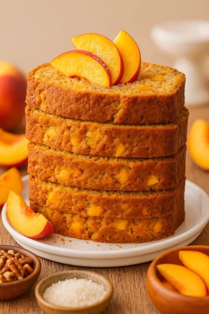 - Rich and Moist Texture: The combination of ripe peaches and oil keeps the bread soft and tender.