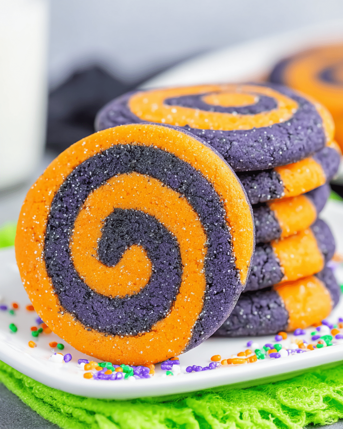 Spiral Halloween Cookies are vibrant, swirled sugar cookies in festive orange and black colors. These buttery slice-and-bake cookies are perfect for Halloween parties, kid-friendly baking, or spooky snack tables.