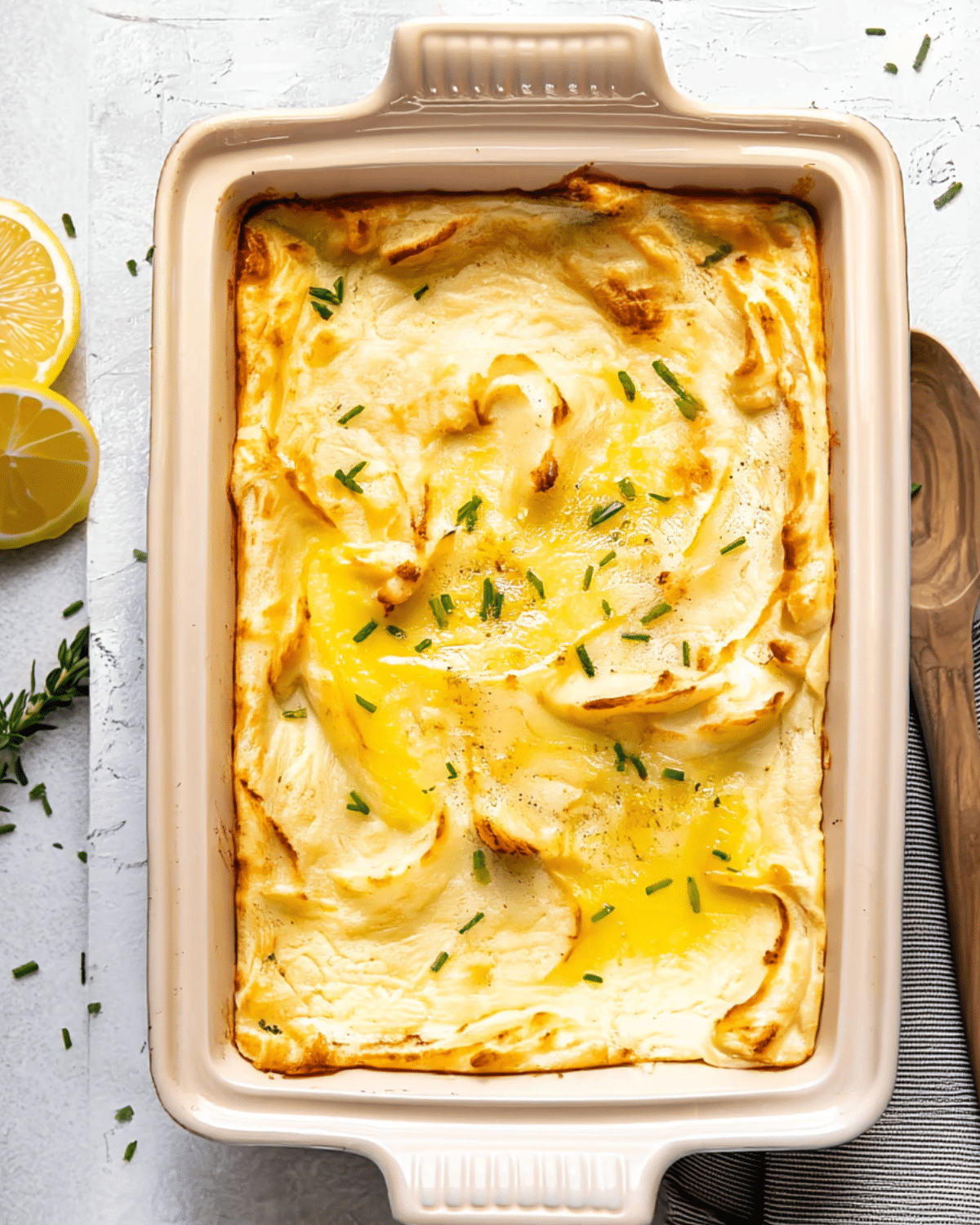 Transform your Creamiest Baked Mashed Potatoes into a loaded potato lover’s dream by folding in crispy bacon bits, shredded cheddar cheese, and chopped green onions before baking.
