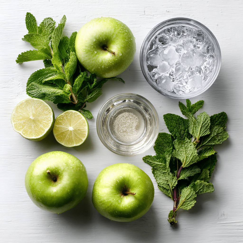 Garnish with mint sprigs, lime wedges, or apple slices.