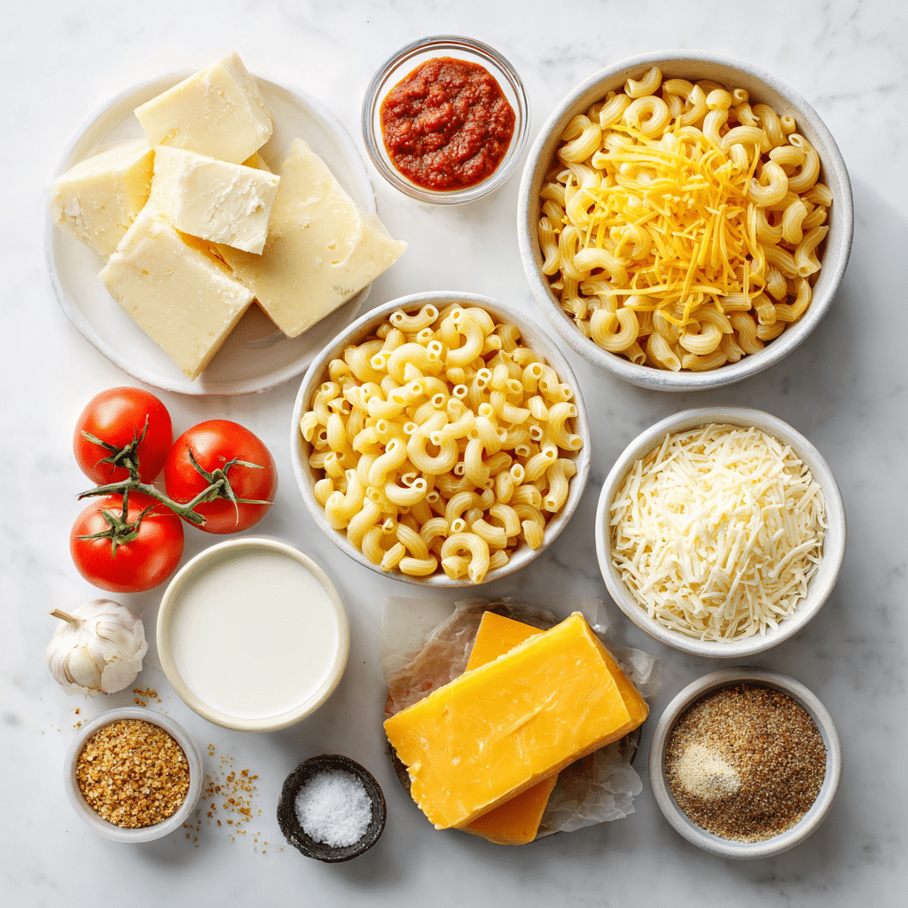 The ingredients for three cheese baked macaroni are simple pantry staples, but each one plays an important role in the final result. Elbow macaroni is the classic pasta choice because its shape holds sauce beautifully. However, shells or cavatappi also work well.