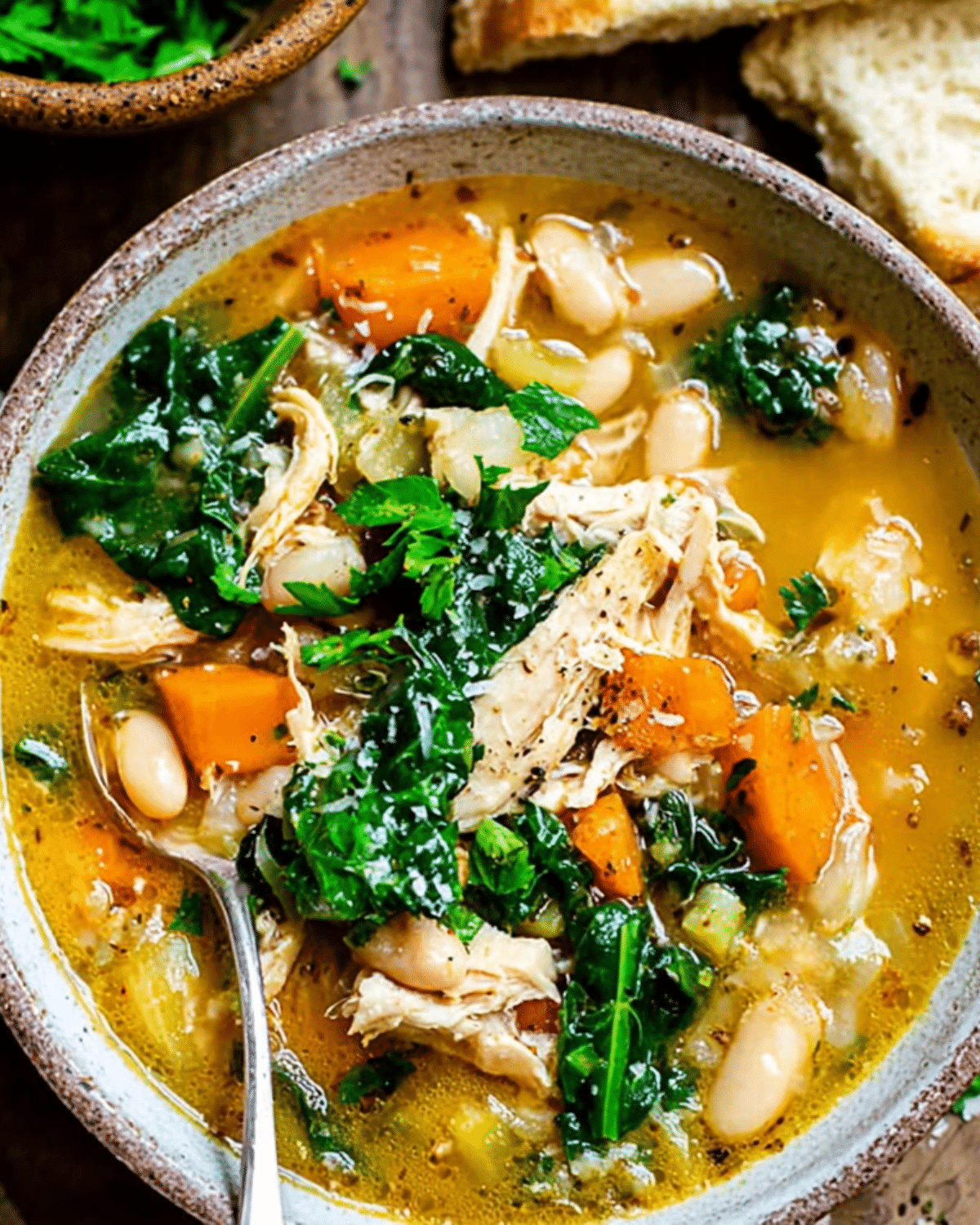 Tuscan Chicken Soup is a hearty, Italian-inspired comfort dish made with shredded chicken, cannellini beans, kale, and aromatic vegetables simmered in a rich chicken broth. Perfect for a cozy, wholesome meal.